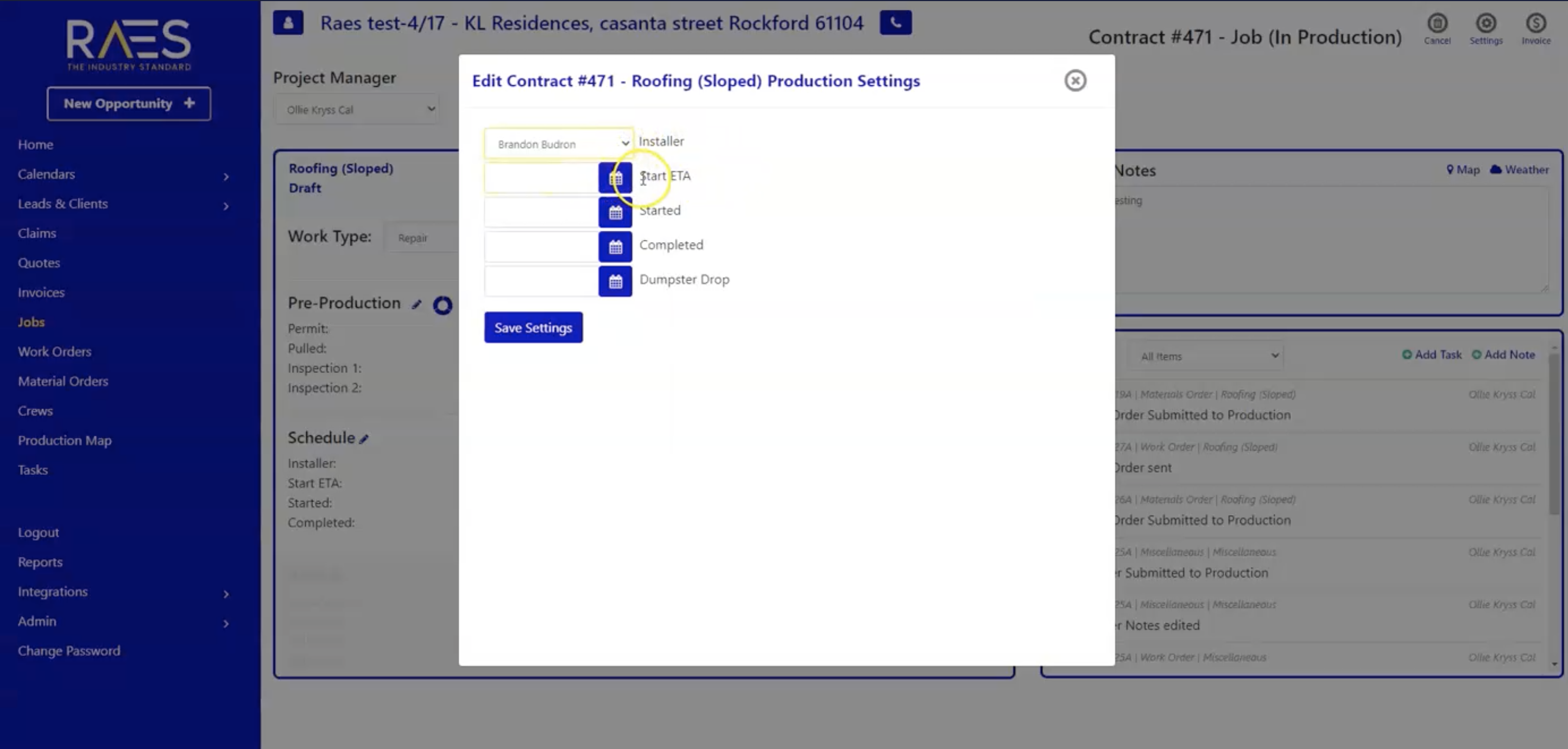 Once you've completed all the pre-production requirements, you can move on to the scheduling stage. This is where you can assign an installer and set dates for the expected start date and completion date.