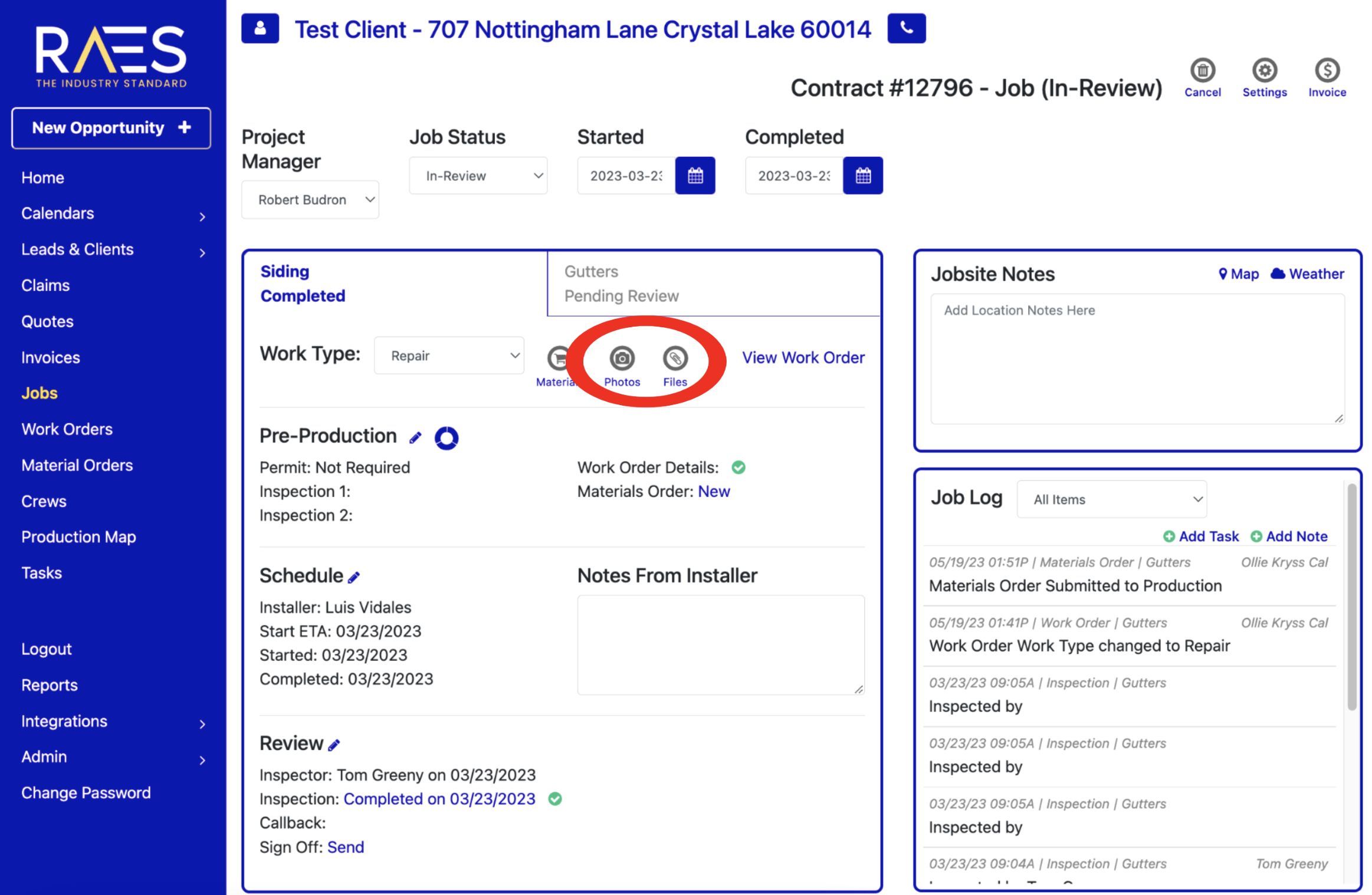 In this example, we will use the service "Siding and Gutter" as the designated service for the client.